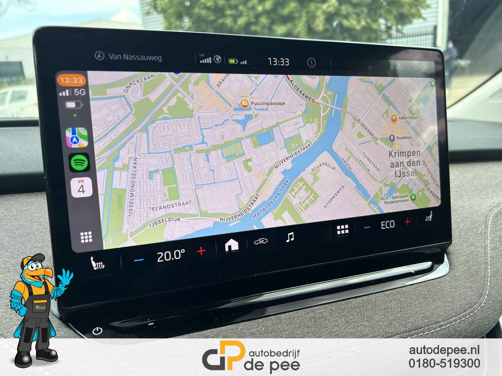 Het audiosysteem is perfect in orde en via draadloze CarPlay en AndroidAuto kunt goed uit de voeten. Gebruik bijvoorbeeld veiligheidsverhogende apps als flitsmeister, waze of gesproken whatsapps.